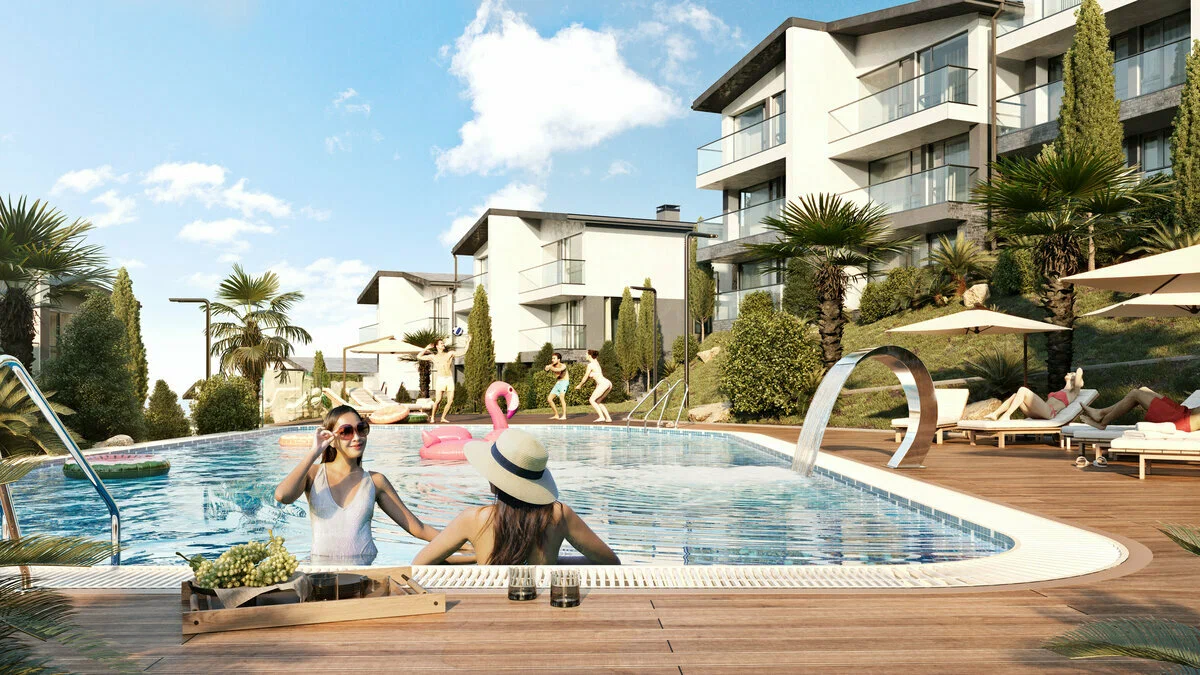 Комплекс находится рядом с удобной транспортной развязкой, благодаря которой можно попасть в любую точку курорта. Рядом есть социально-бытовая инфраструктура.