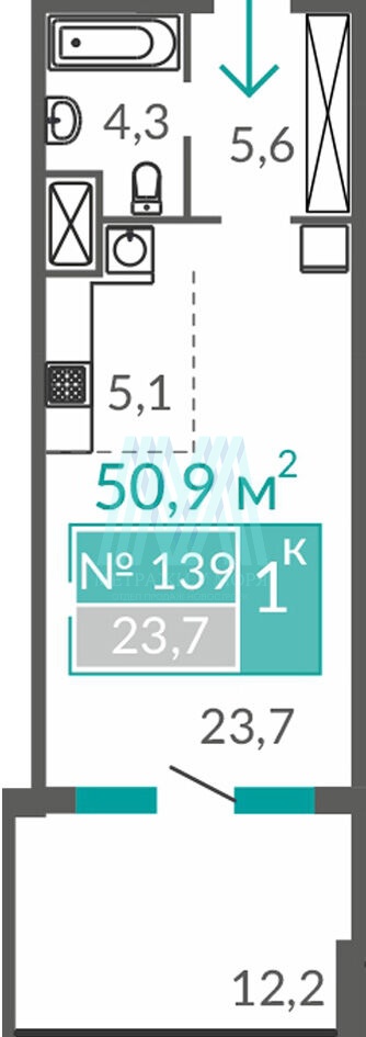 Апартамент студийного типа 50,9 кв.м.в рекреационном комплексе Золотые пески
