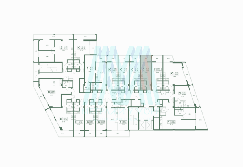 Апартаменты представлены различными планировками: от студий 27 м² до двухуровневых апартаментов площадью 125 м² с открытыми балконами и большими панорамными окнами.