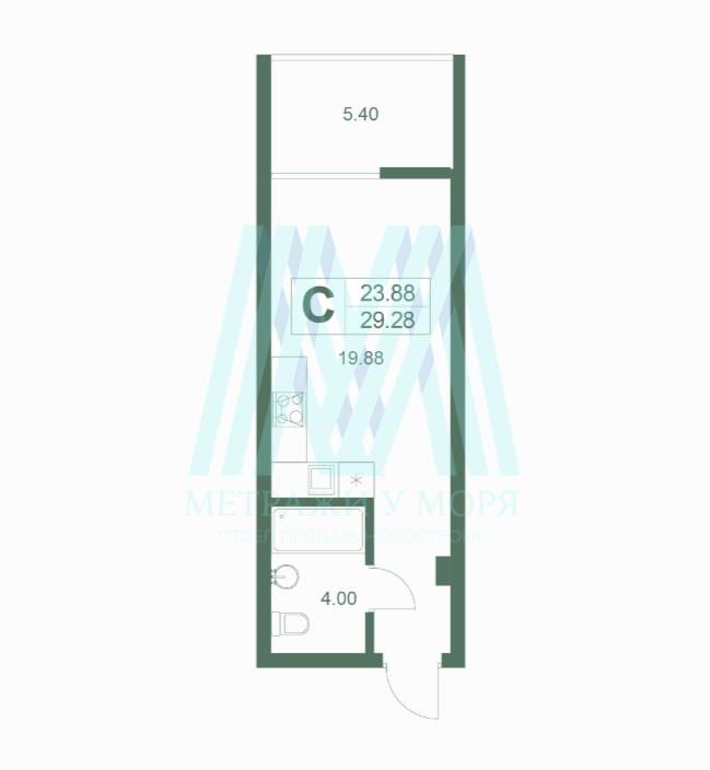 Видовые однокомнатные апартаменты 29,28 кв.м.в комплексе Резиденция Дарсан