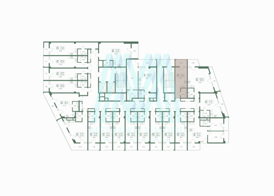 Апартаменты представлены различными планировками: от студий 27 м² до двухуровневых апартаментов площадью 125 м² с открытыми балконами и большими панорамными окнами.