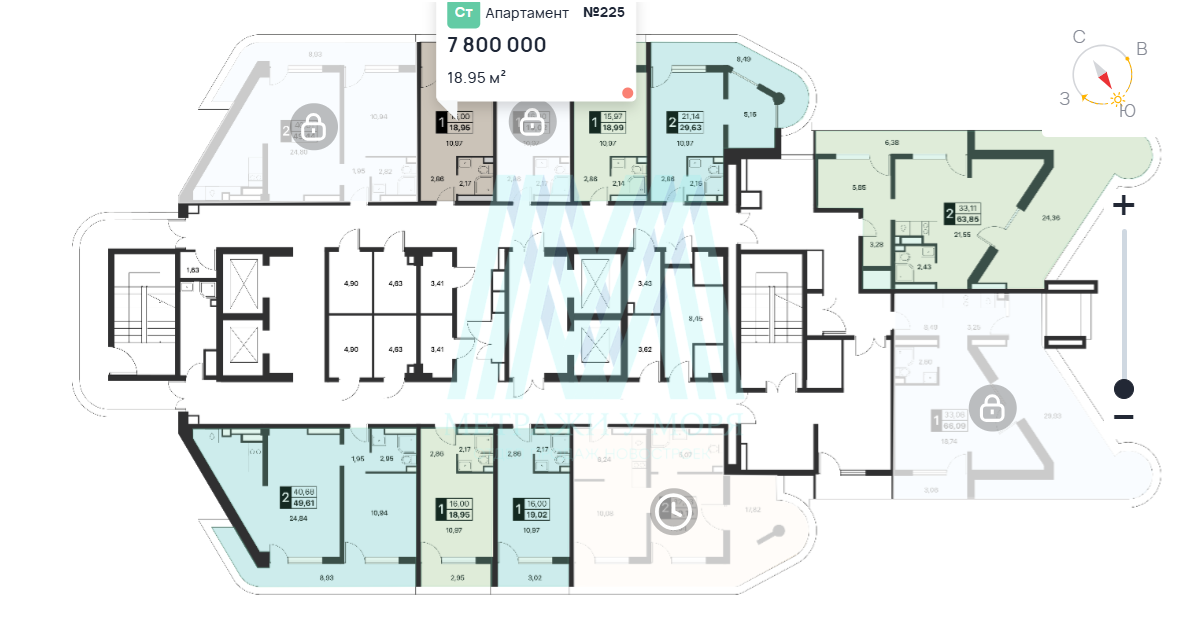 - Площадь апартаментов: от 19 м2 до 95 м2.