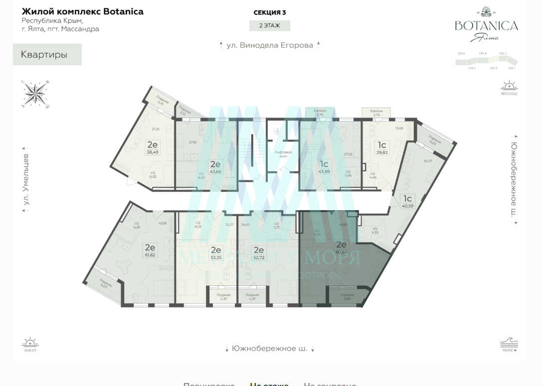 2-к ЖК "Ботаника" №186 этаж 2