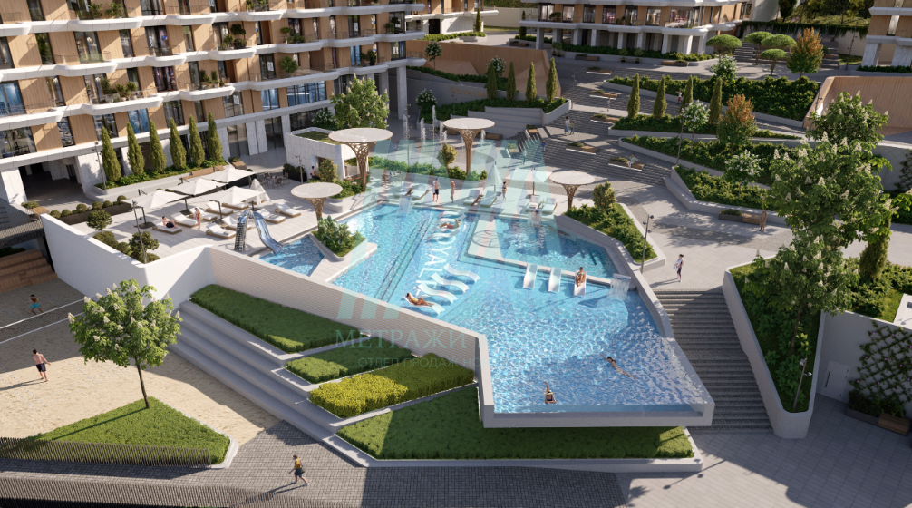 Ландшафт «Роялты» представляет собой систему многоуровневых террас, которые «спускаются» к набережной и гармонично соединяются стильными лестницами-амфитеатрами.