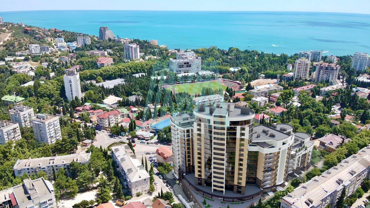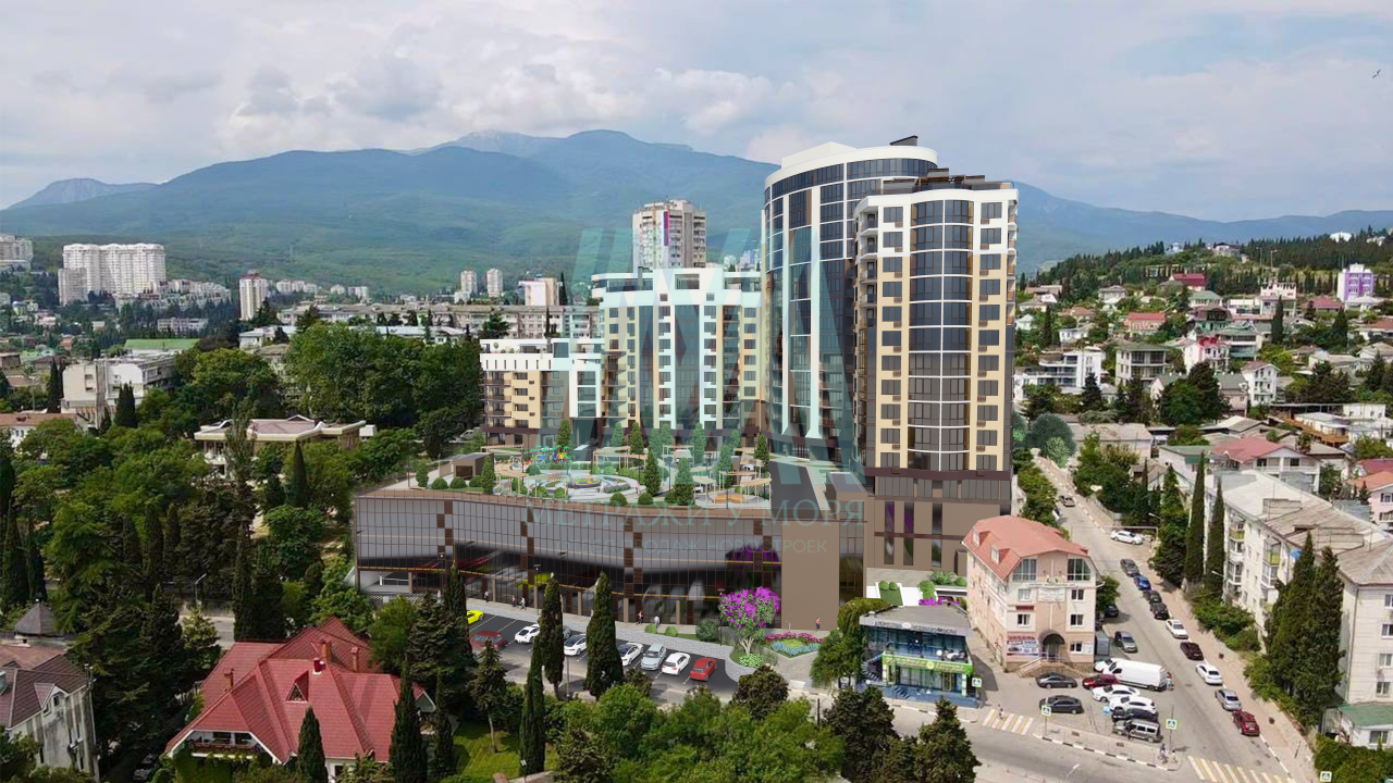 Архитектурный ансамбль жилого комплекса,состоящего из четырёх блоков различной этажности, гармонично сочетается с общей картиной южнобережного курортного города.