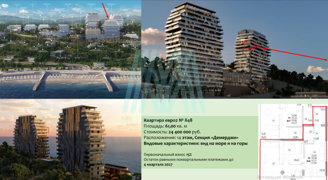 Корпус Демерджи. Общая площадь квартиры 61,00 м².
