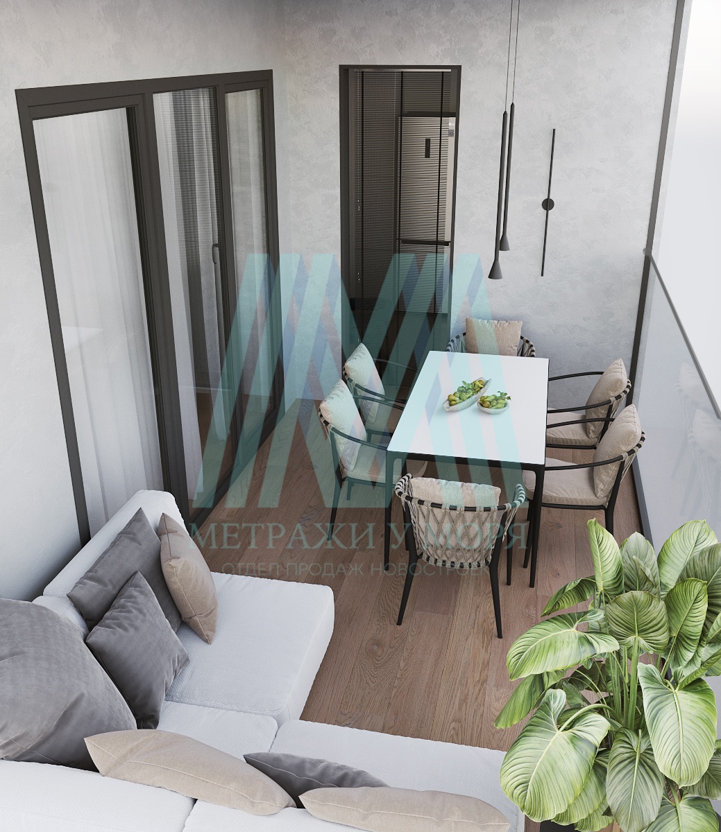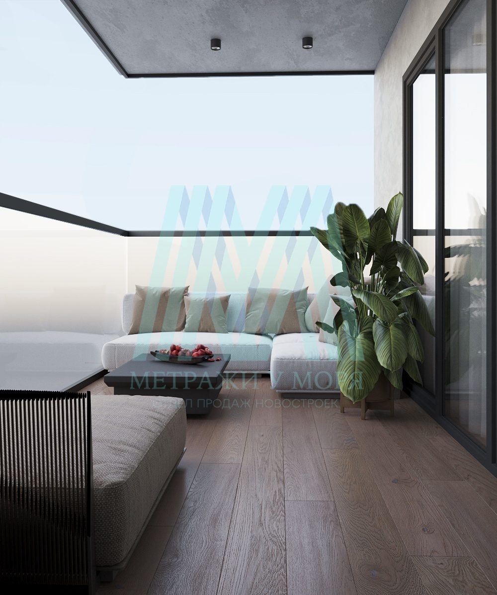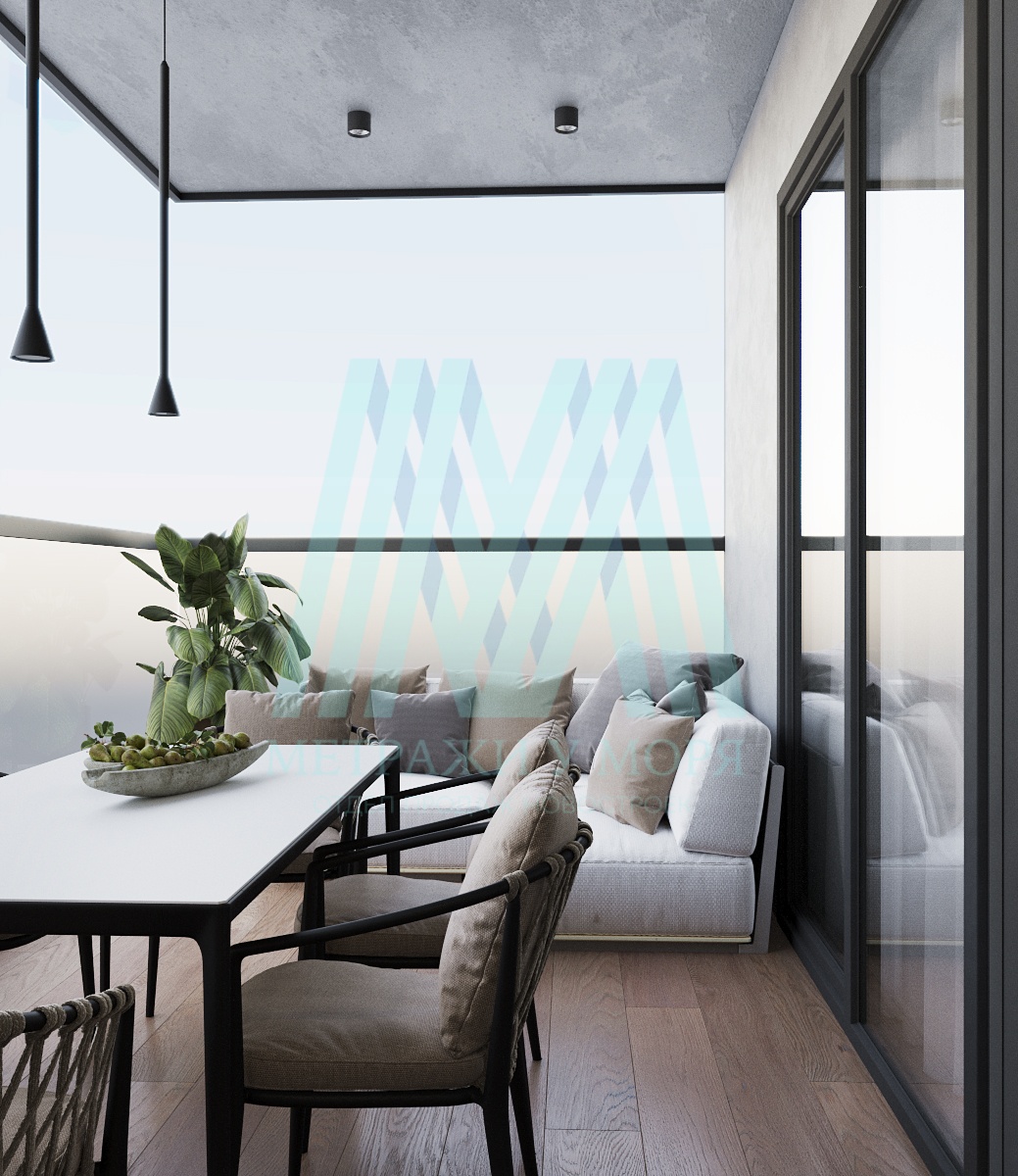 Лоджии запроектированы с внутренней террасой, а панорамное безрамное остекление с откидным верхом подходит для тёплого южного климата.