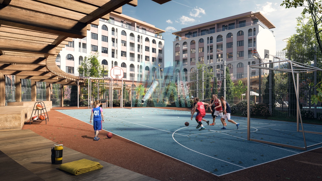 Для вас в «Долине роз» предусмотрена мультифункциональная спортивная площадка и пространство для занятий workout на свежем воздухе. Баскетбол с друзьями или утренняя пробежка наедине с собой, тренировки под бодрую музыку или йога в тени деревьев — выбирайте то, что вам по душе.