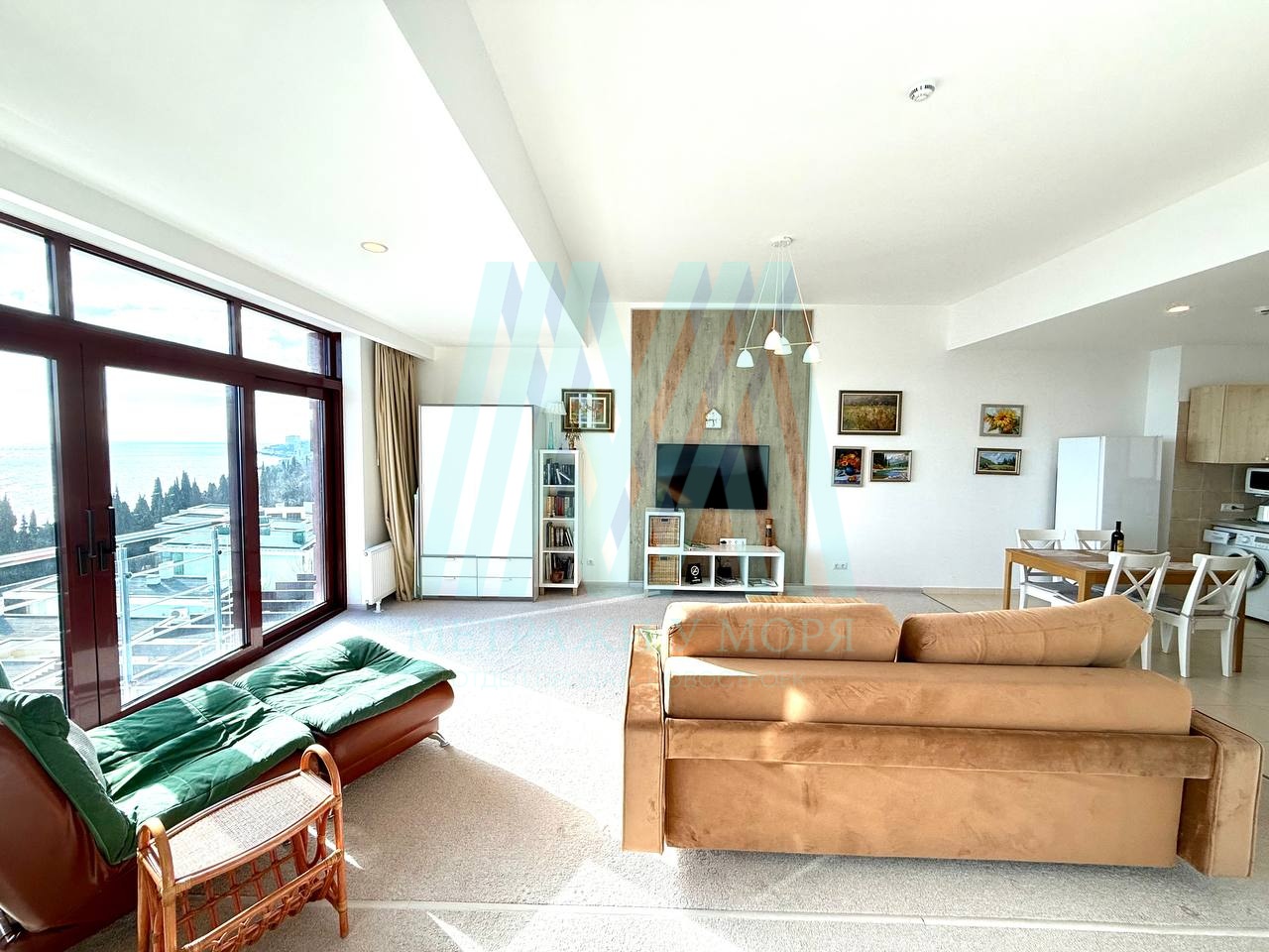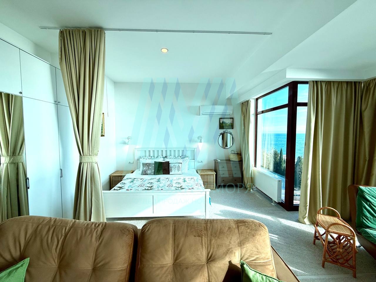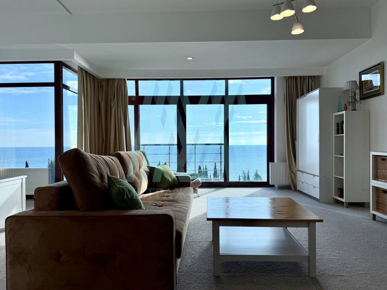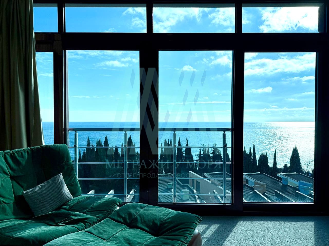 Дизайн интерьера выполнен в современном стиле с использованием высококачественных материалов и современной мебели. Шикарные панорамные окна в пол с видом на море, горы и набережную.