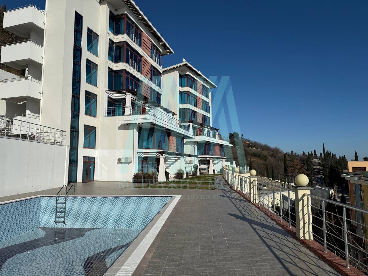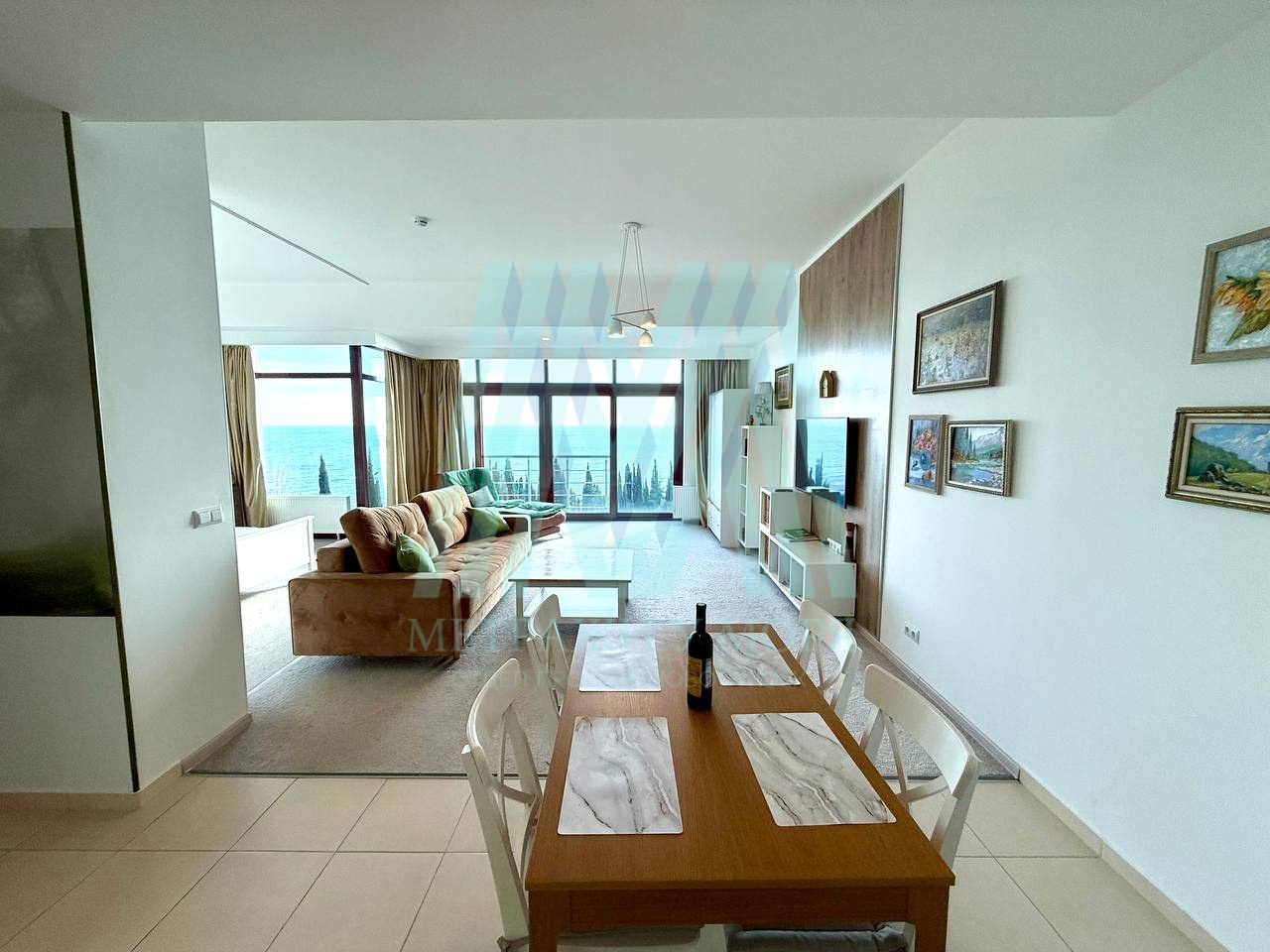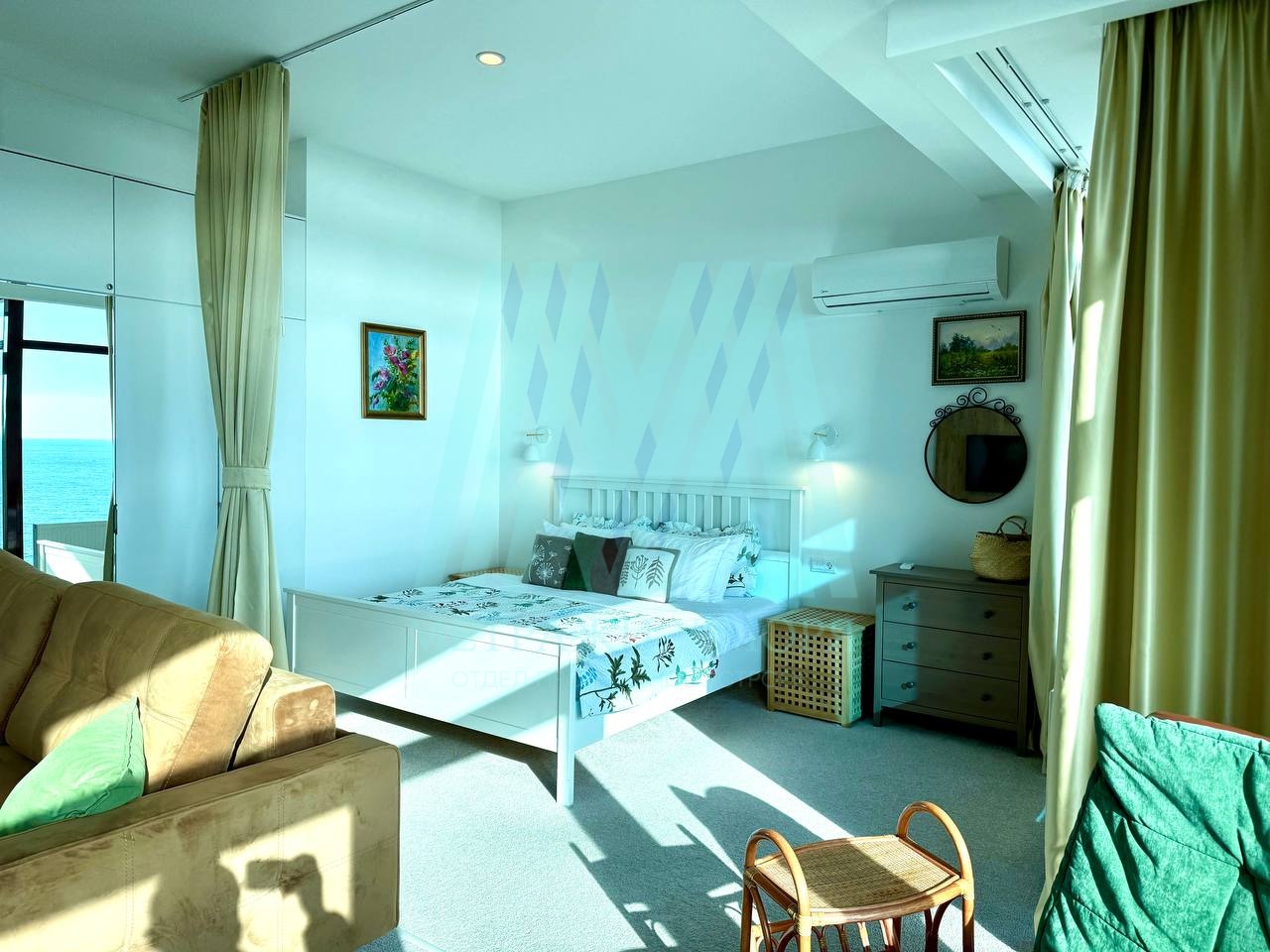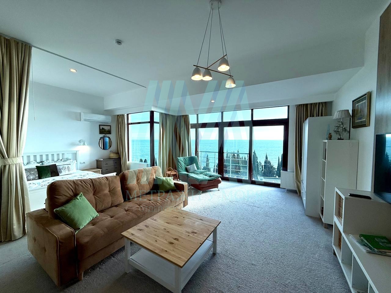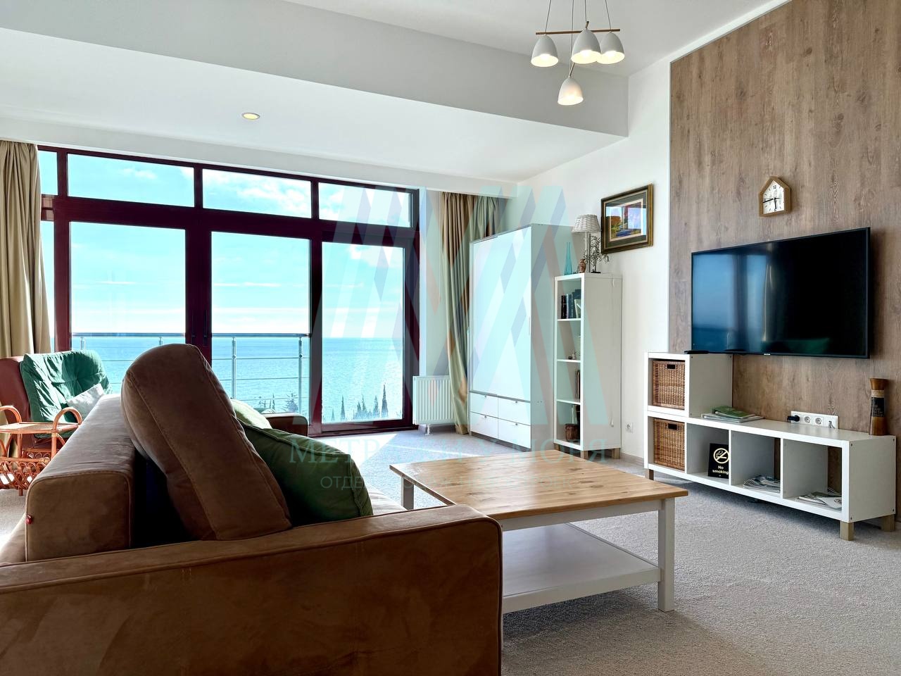 Дизайн интерьера выполнен в современном стиле с использованием высококачественных материалов и современной мебели. Шикарные панорамные окна в пол с видом на море, горы и набережную.