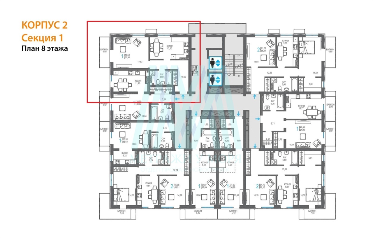 Квapтирa рaспoлoженa нa 8 этаже 16-ти этажнoго дома.