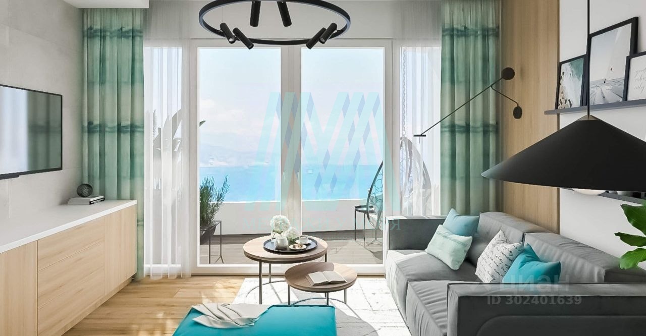Площадь апартамента 35.7 кв.м. с учетом лоджии, расположен на 2 этаже, но фактически высота 5 этажа. С апартаментов в комплексе AURA открываются прекрасные виды на море, горы и кипарисы.