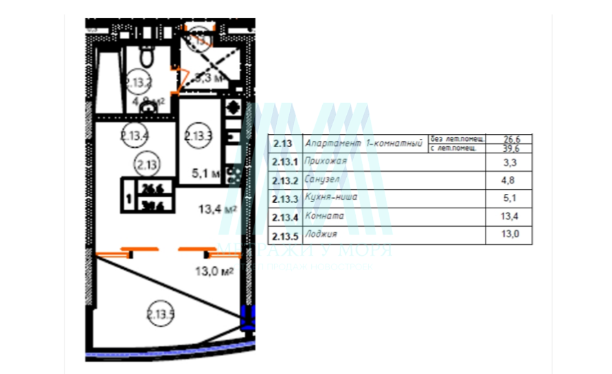Площадь апартамента 39.6 кв.м. с учетом лоджии. С апартаментов в комплексе AURA открываются прекрасные виды на море, горы и кипарисы.