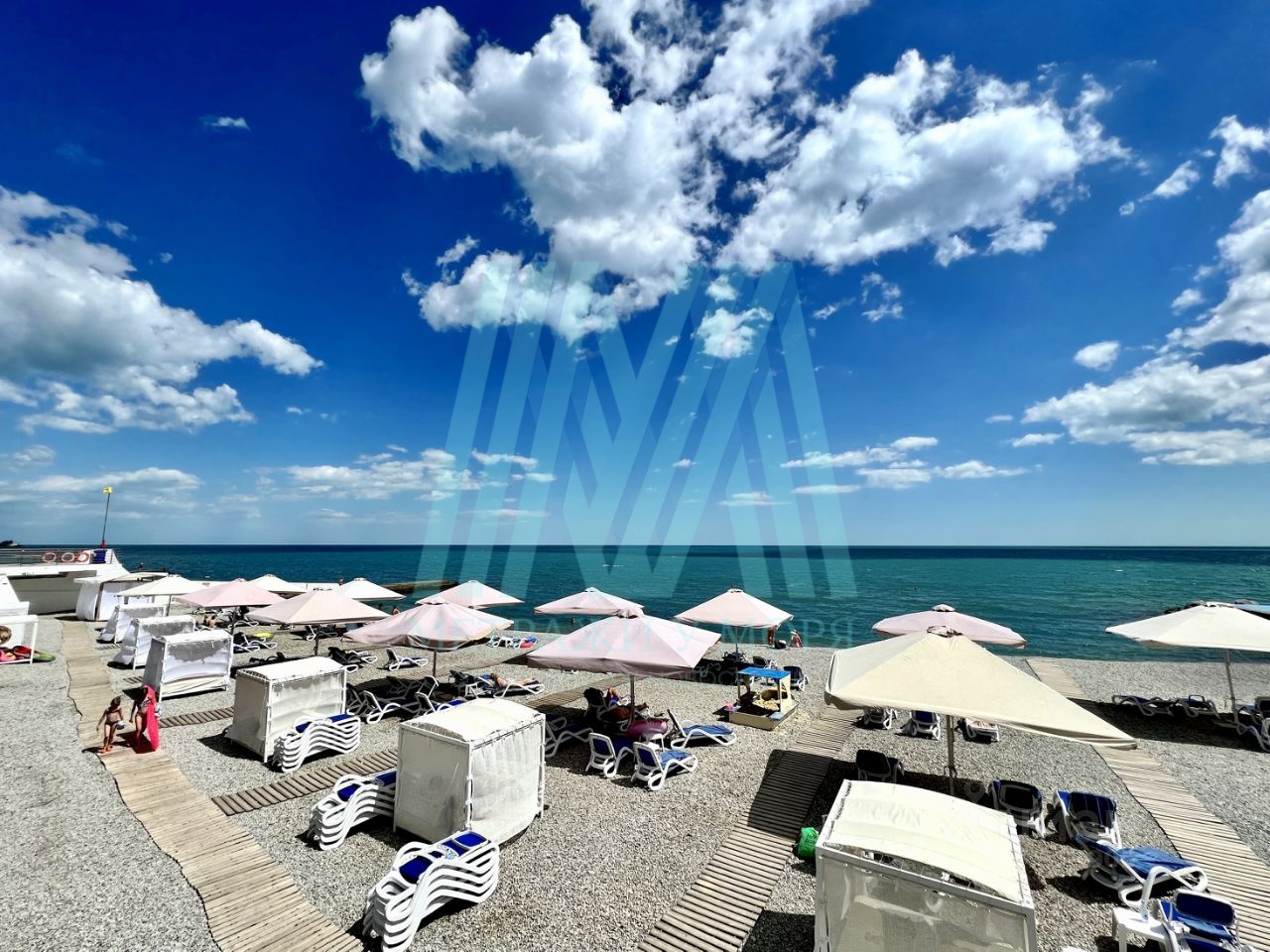 - пляж и два бассейна с очищенной морской водой (внутренний и открытый, площадью 350 м²);