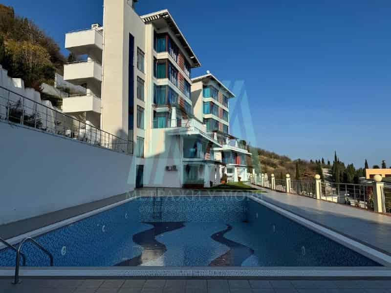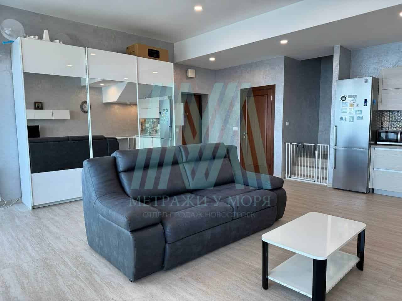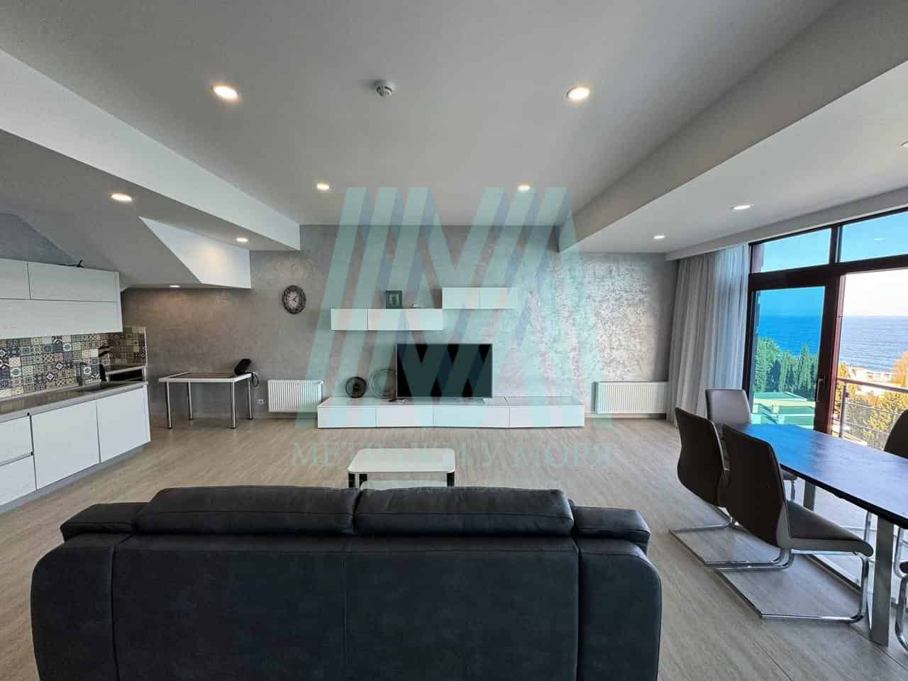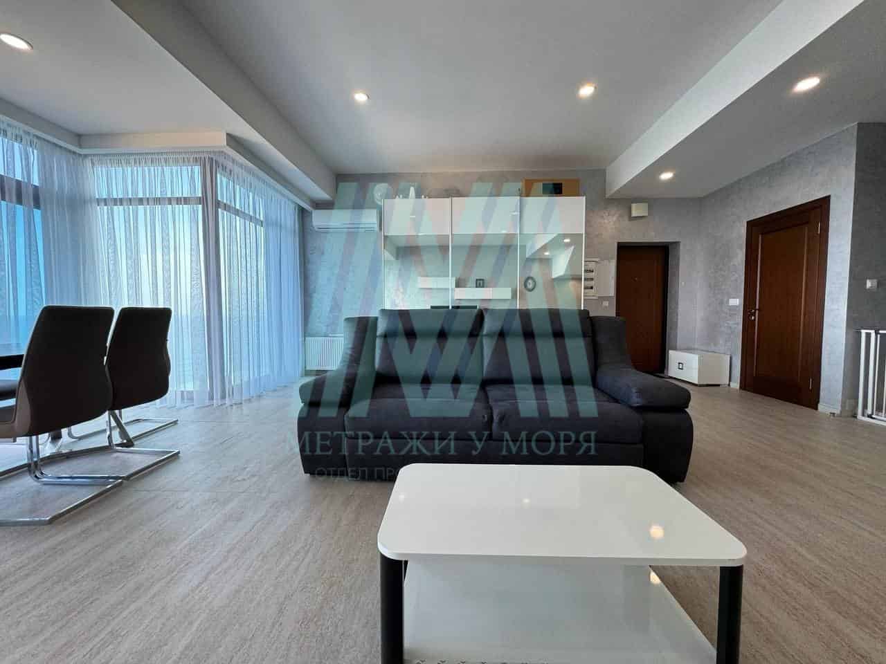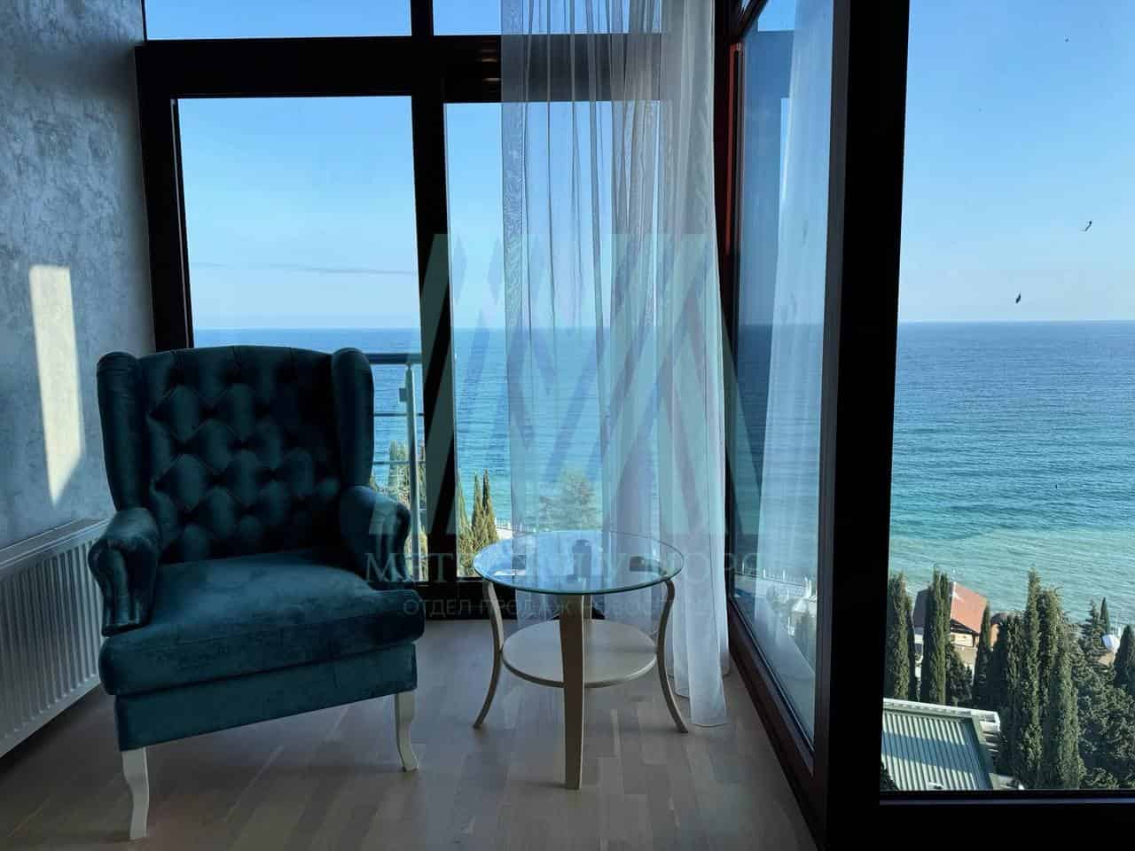 В апартаментах комфортная современная планировка, шикарные панорамные окна в пол с видом на море, горы и набережную.