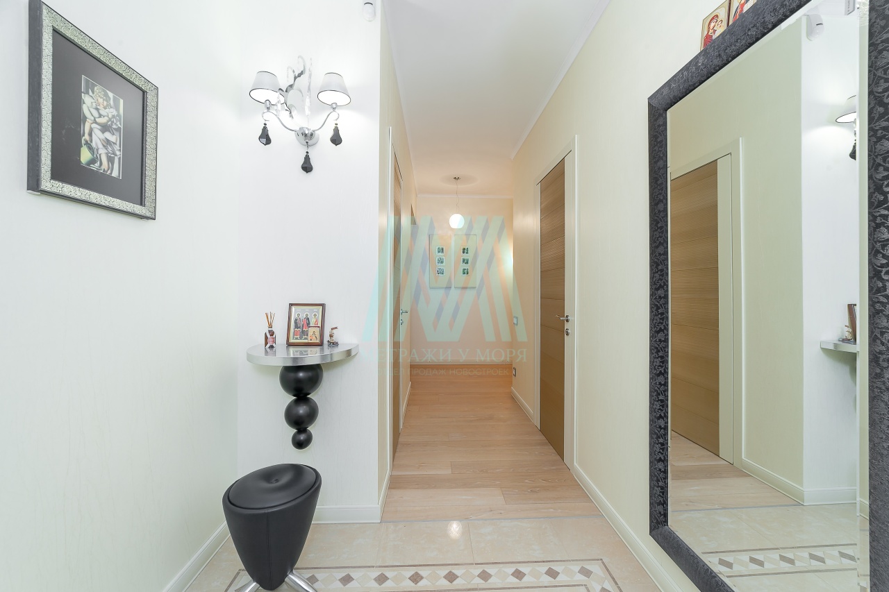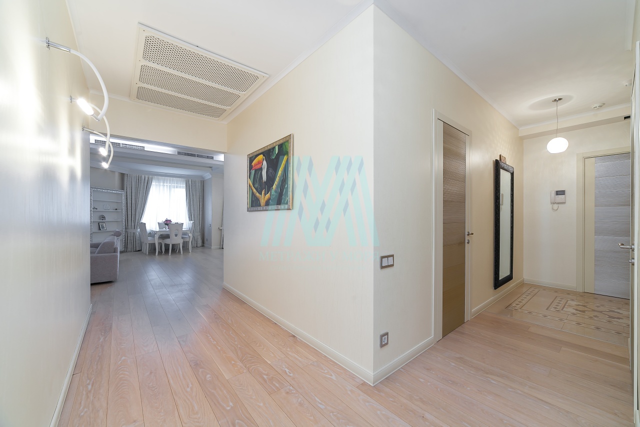 это современные, очень просторные, площадью 170м2. апартаменты с дизайнерским и авторским ремонтом, выполненные из самых дорогостоящих и высококачественных материалов. Буквально все продумано. Входная группа включает в себя коридор, сразу очень большой гардероб и гостевой туалет, со стирально-сушильной машинкой МIЕLЕ.