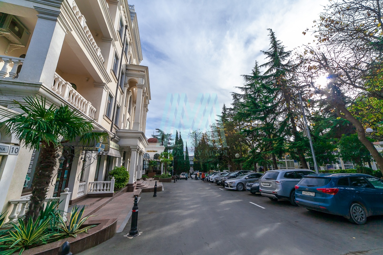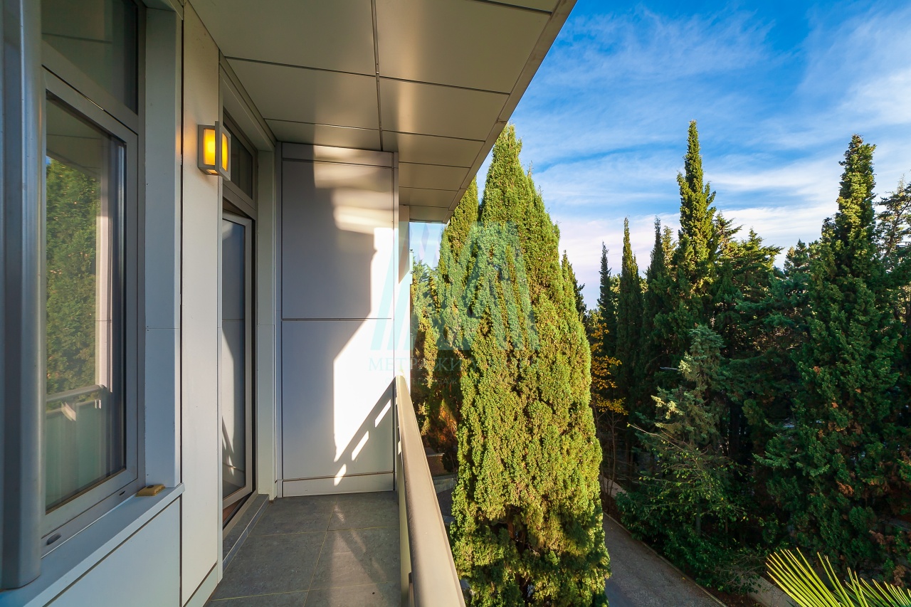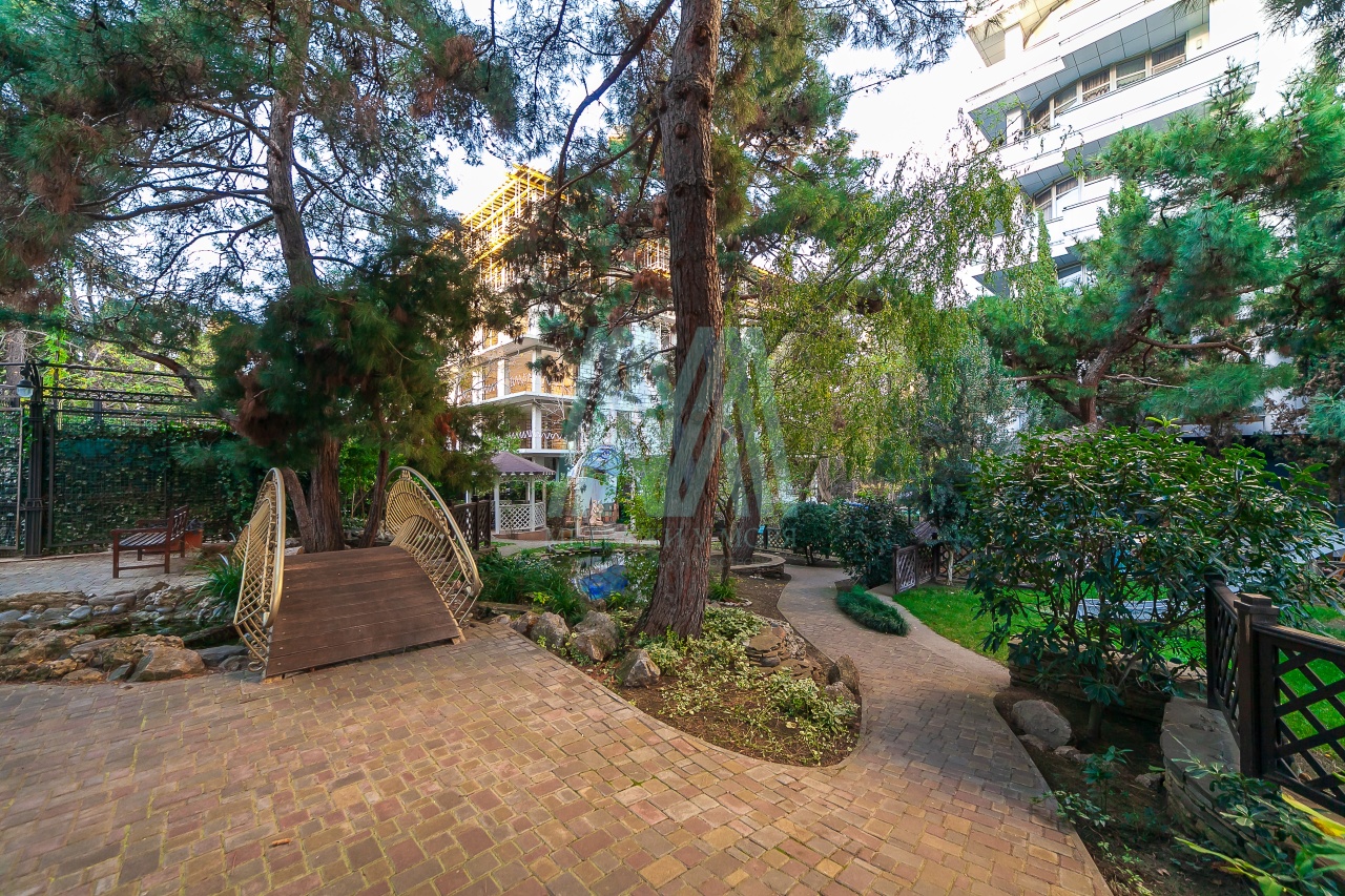 есть круглосуточная охрана, ресепшен, которые всегда готовы помочь с решением любого вопроса. Въезд на территорию дома закрытый, только для жильцов. В собственном парке дома растут уникальные деревья, которые были привезены из Никитского ботанического сада. В парке есть беседки и лавочки, где можно спокойно отдохнуть и насладиться красотой природы ЮБК.