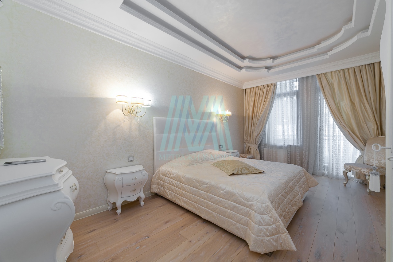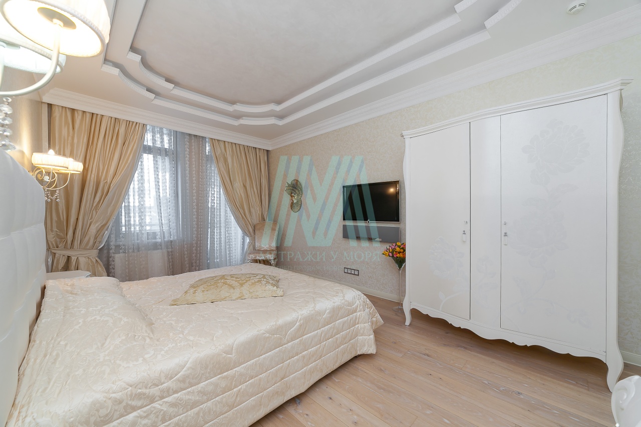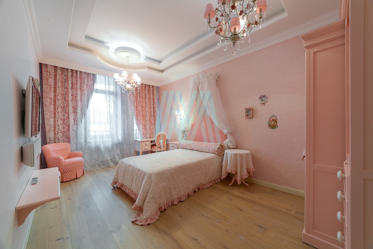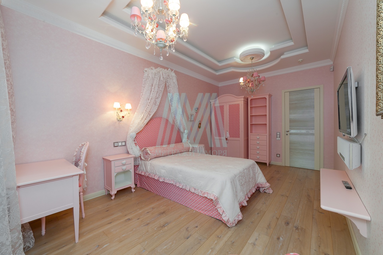 2 спальни (взрослая и детская) и просторная зона гостиная-столовая-кухня (с двумя балконами, выход из кухни, выход из зоны гостиной). Взрослая спальня выполнена в пастельно-кремовых тонах, обустроена дизайнерской мебелью Gаsti Роrrtеss. Очень большая и удобная кровать DеRuссi с двухрядным каркасом и контейнером. Детская спальня-уникальная, она выполнена по классическим канонам из натуральных материалов итальянской фабрикой Наllеy. Это настоящий оазис роскоши!