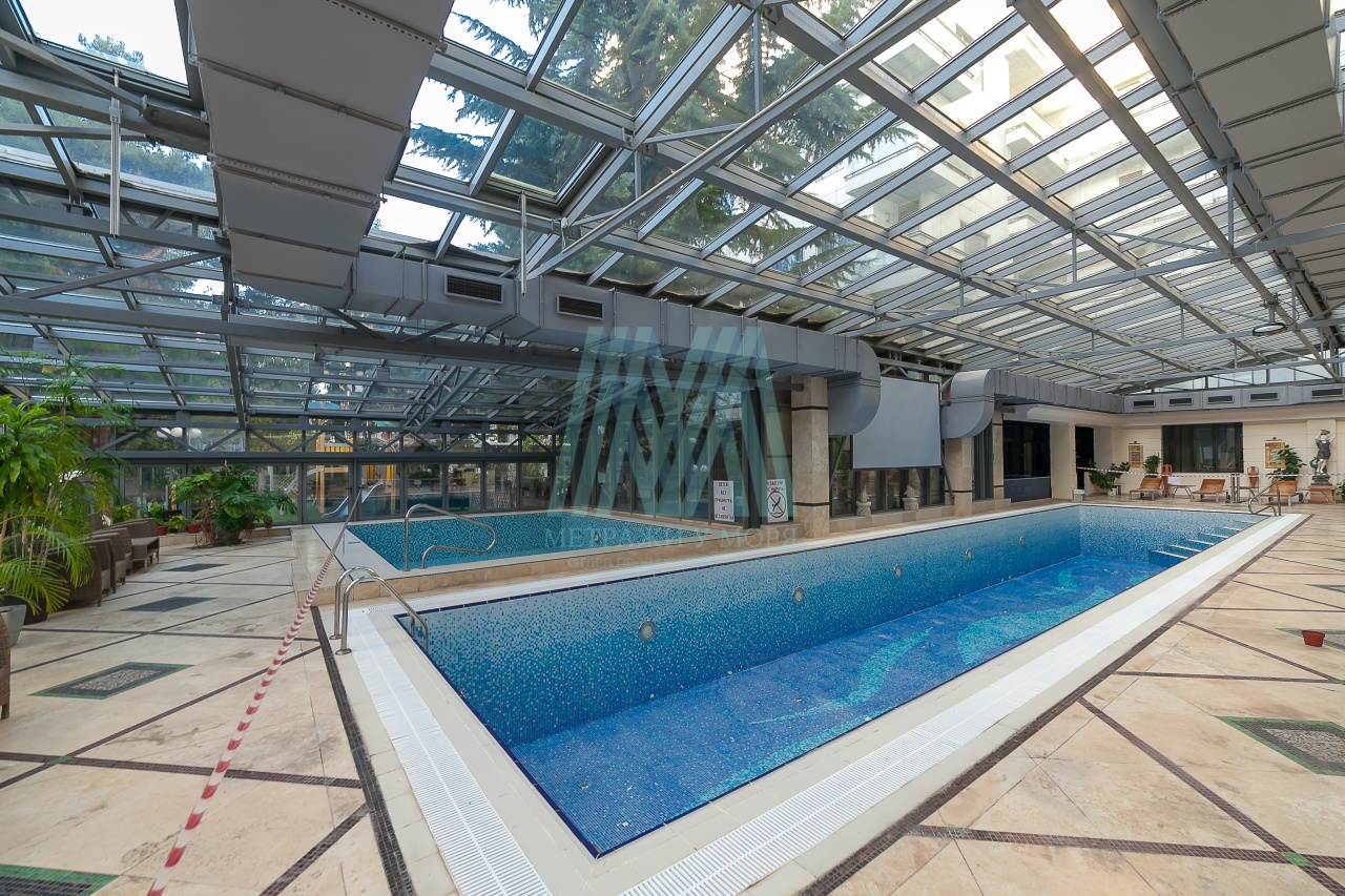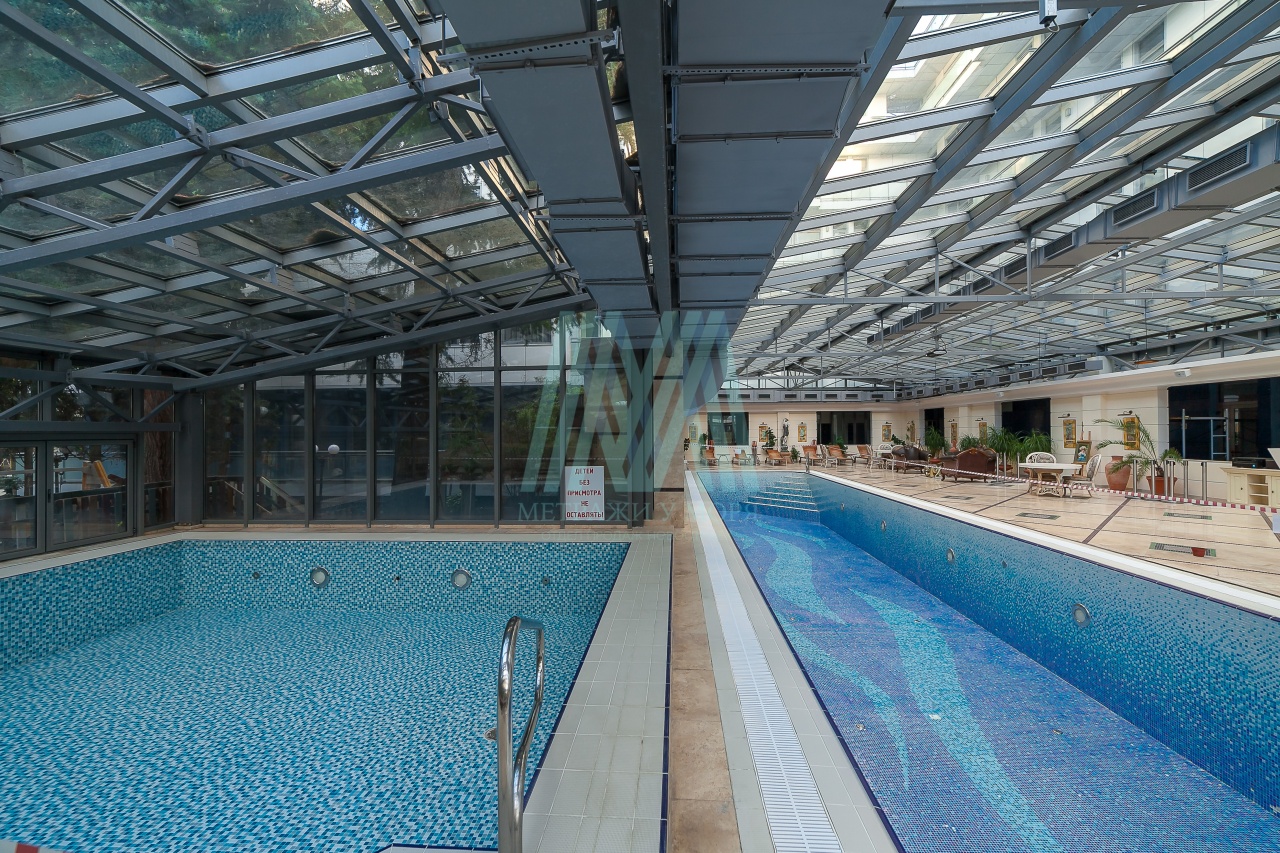 есть два круглогодичных бассейна (детский и взрослый), есть spa-зона, свой парковый двор, фонтан и пруд с рыбами! Для детей есть обустроенная детская площадка.