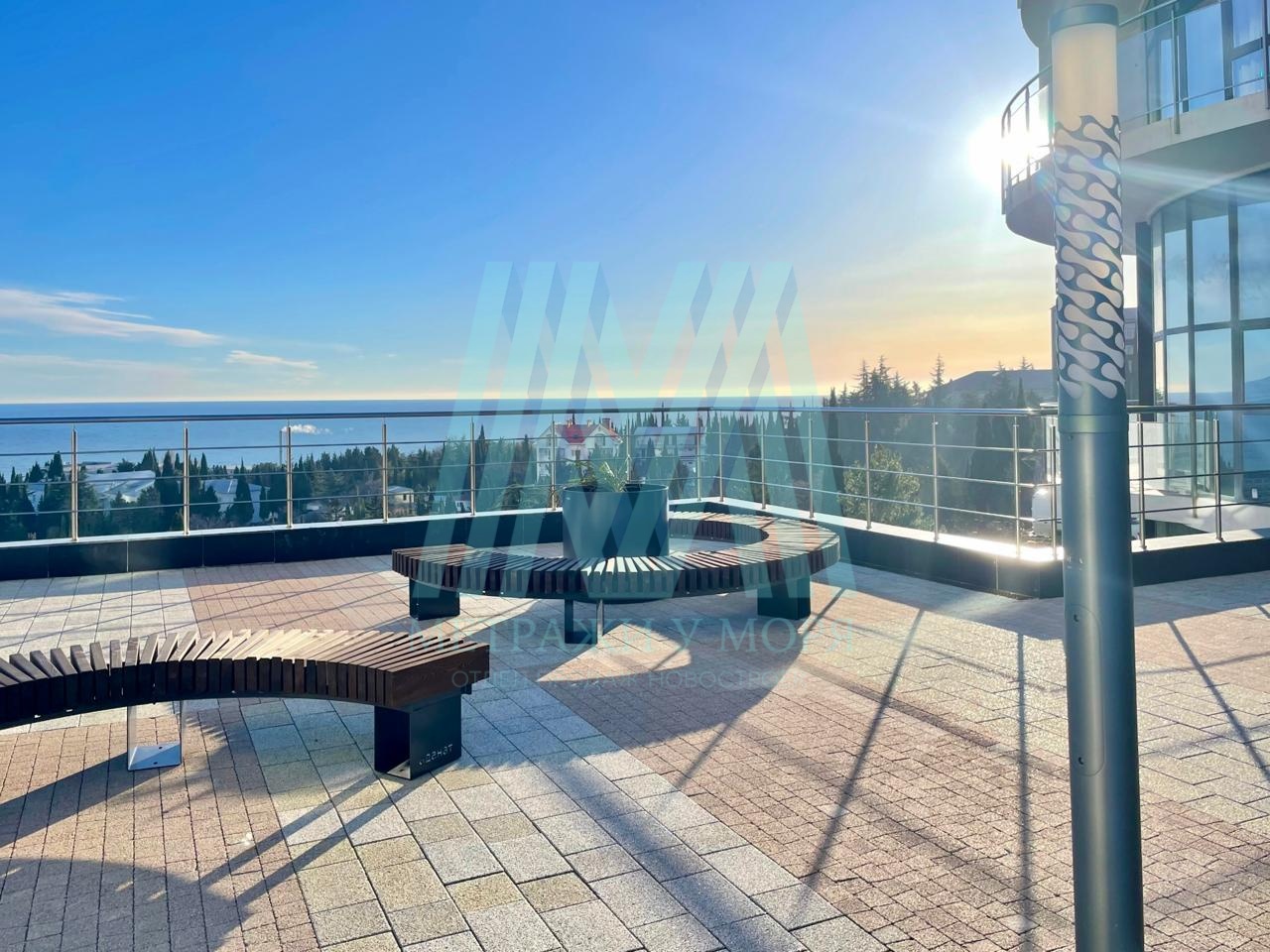 - Расположен в комплексе Крымская Резиденция, Профессорский уголок города Алушта на 9 этаже 16-ти этажного здания.