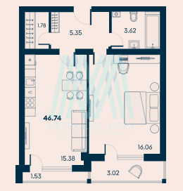 - Площадь 46.74 кв.м.