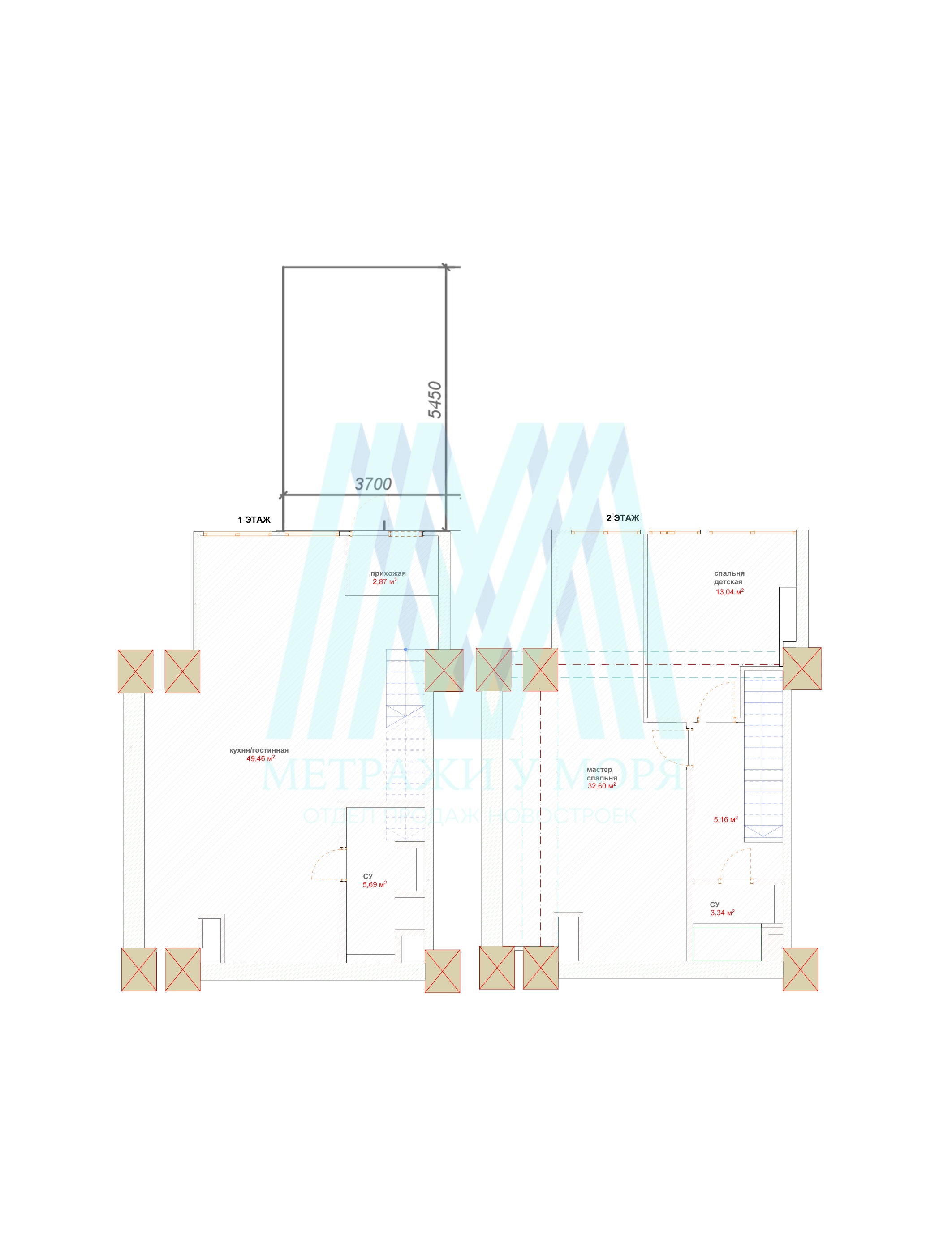 Площадь 133,5 м², 2 уровня, гибкая свободная планировка.