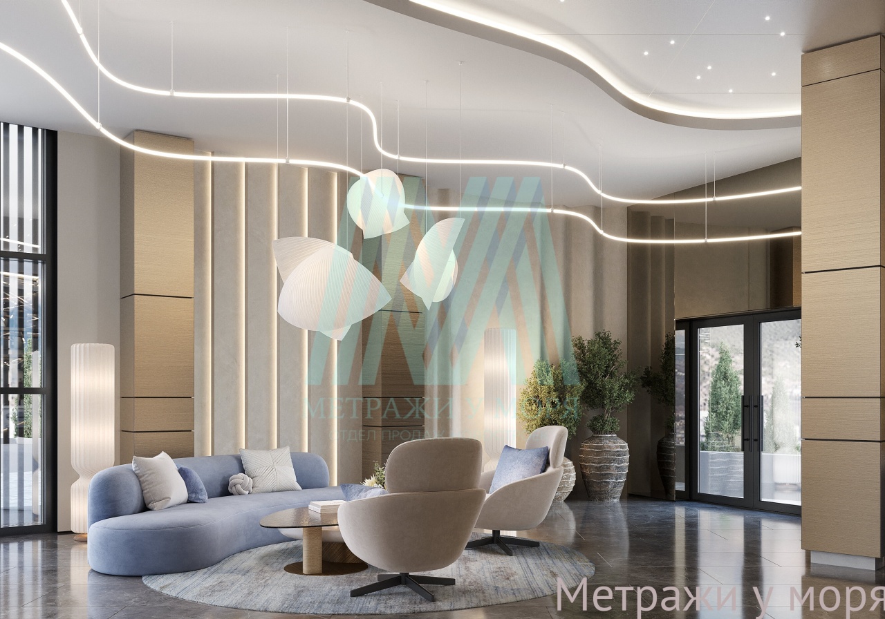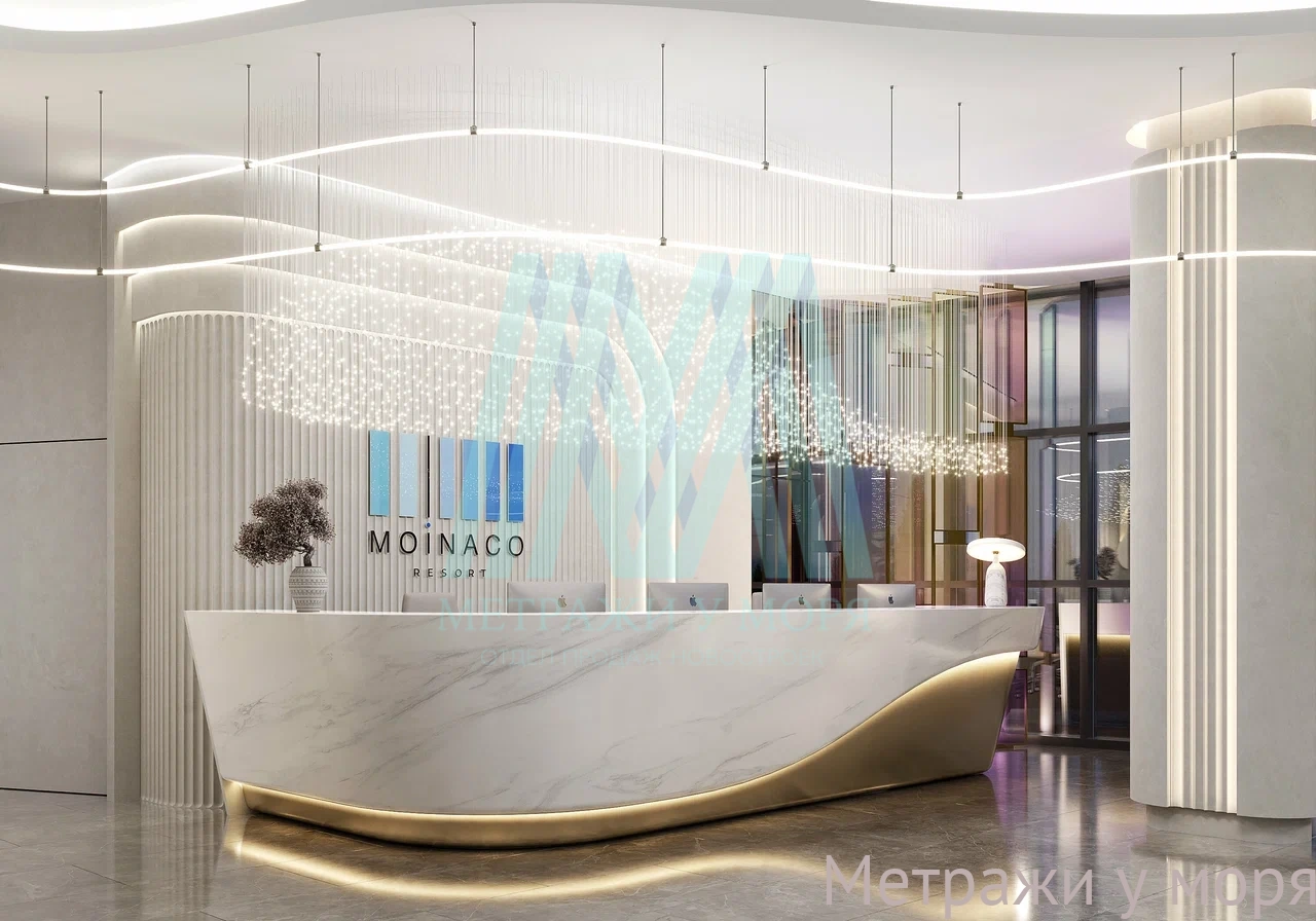 В апартаментах Moinaco Resort в Евпатории предусмотрены видовые лоджии, которые можно оформить в качестве уютного рабочего места или зоны отдыха.