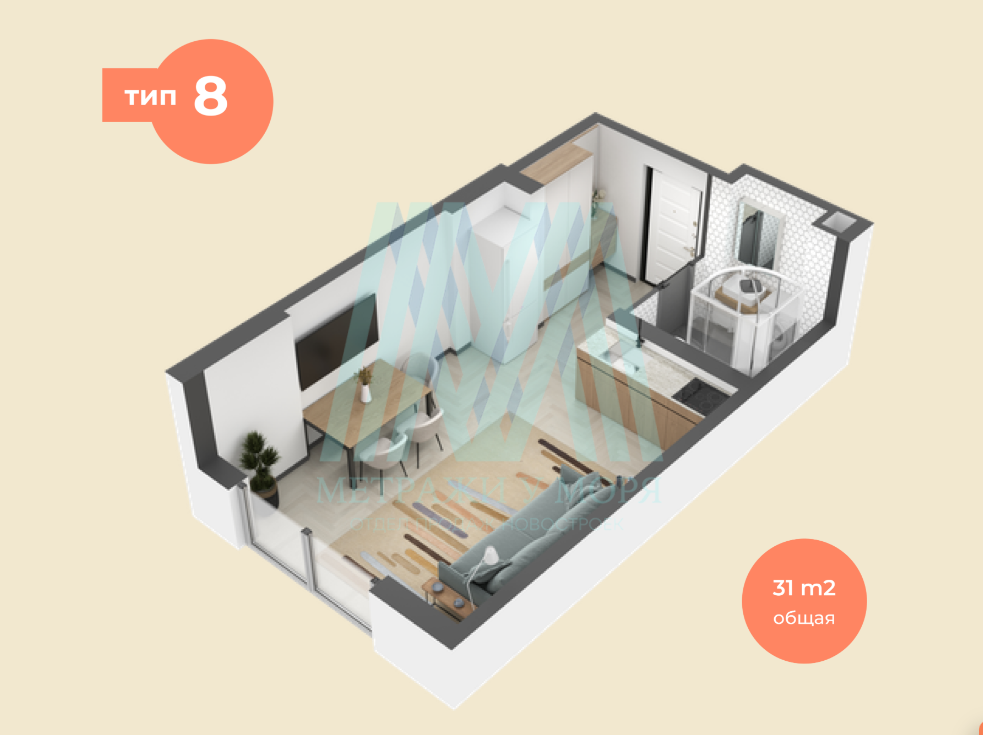 увеличения площади. Распорядитесь свободной планировкой на свой вкус и решите, какой вид откроется из вашей спальни, какого размера будет гостинная и где разместить кухню.