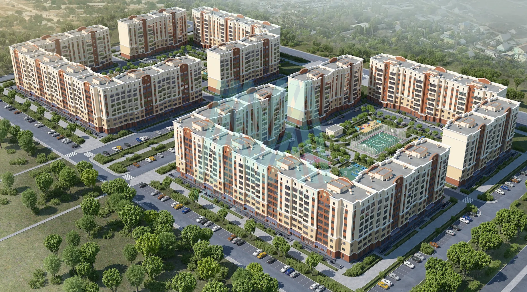 - Развитая инфраструктура: школы, детсады, парковки, зоны отдыха