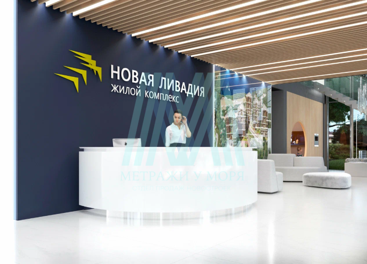 Интерьеры входных групп ЖК «Новая Ливадия» выполнены в стиле современного Арт-Деко. Общая цветовая гамма-сочетание текстуры темно-коричневого натурального шпона и латунных элементов. Для корпусов 1,3 и 5 латунь и близкие к ней оттенки - основные элементы. Для корпусов 2 и 4, с более темными фасадами дерево - основной элемент в отделке, а латунными элементами выделены дополнительные акценты.