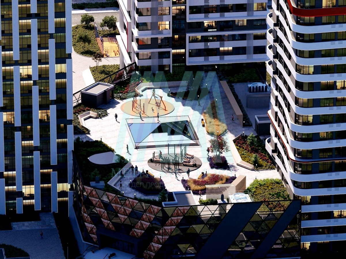 Двухуровневый подземный паркинг с собственной автомойкой.Общественное пространство на эксплуатируемой кровле— идеальное место для отдыха с детьми. Центр культурного развития для детей с концертным залом на 170 мест.