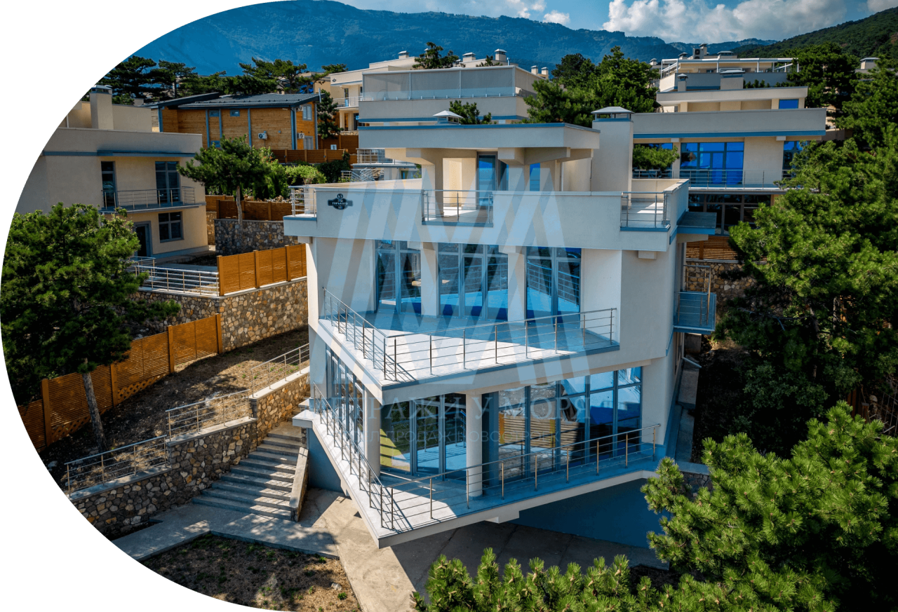 Дома премиум-класса на закрытой благоустроенной территории общей площадью 2,2 гектара, с правом прописки. Безупречный современный дизайн коттеджей органично вписан в вечнозеленую парковую зону Южного берега Крыма.