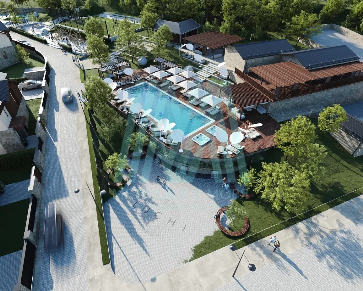 Коммуникации: централизованное электро- и газоснабжение, скважина с чистейшей водой высокогорных источников, локальные биологические очистные станции на каждом участке, оптоволокно с высокоскоростным интернетом.